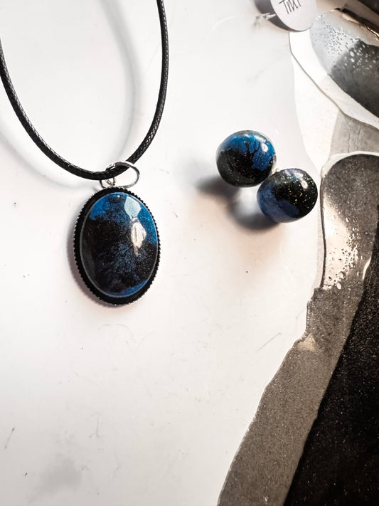 The Tell Me I'm Pretty Collection showcases pieces that delve into elegance with a touch of mystique. Crafted from resin, inks, and other media, each piece reveals unique reactions and layers that bring a rich, moody allure to the collection. These designs embody a quiet sophistication, inviting you to discover their depth and character with every glance.
