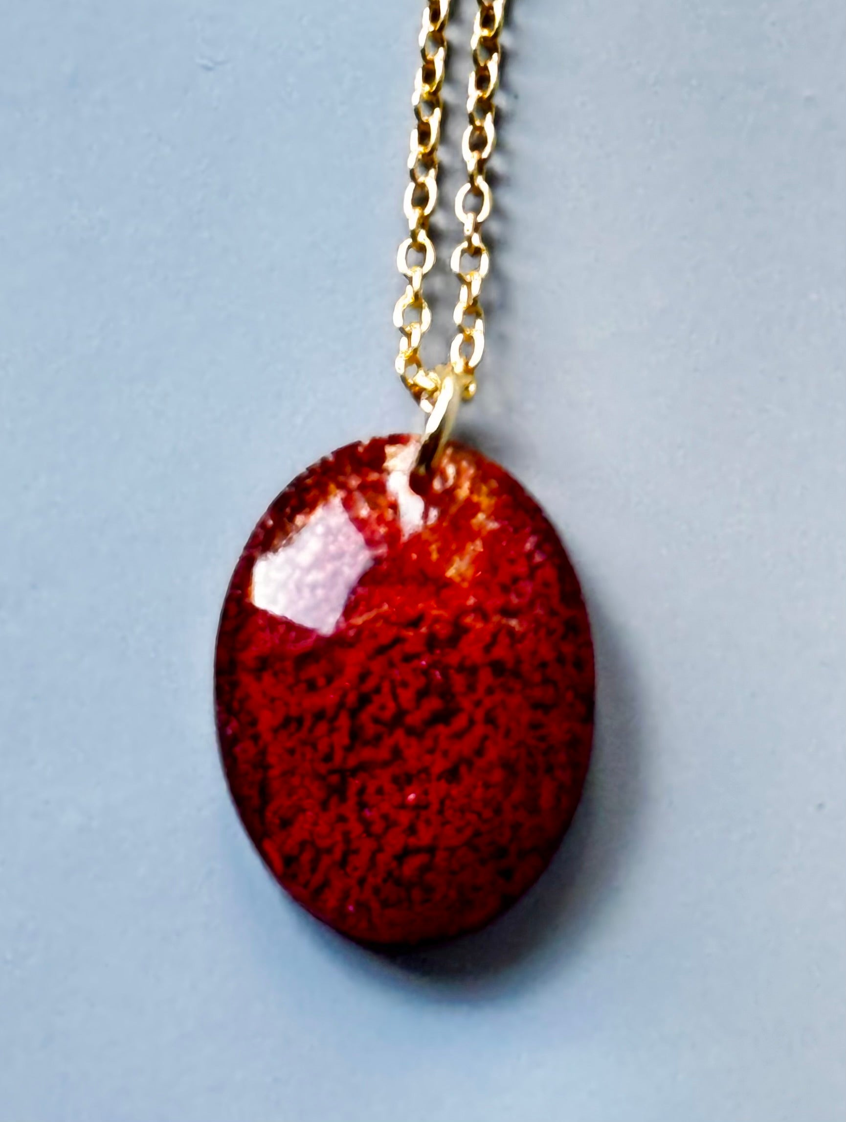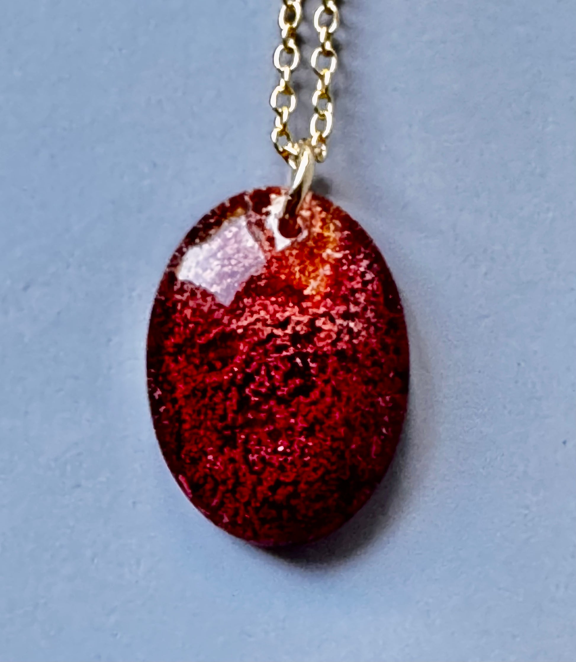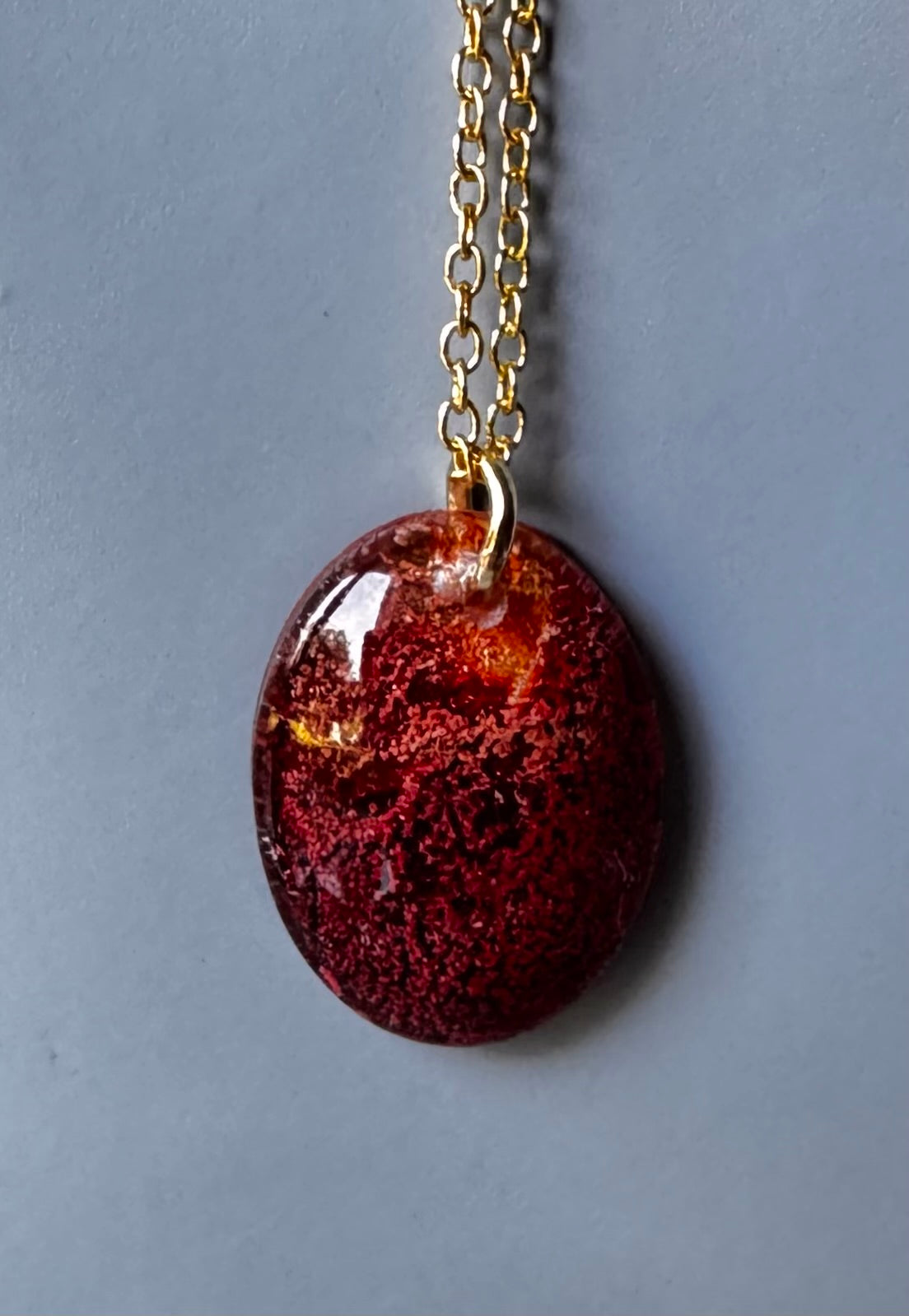 Expertly crafted with a deep and intricate design, our Fiery Sunset pendant is the perfect accessory for the fall season. The warm hues of amber, red, and yellow add depth and richness, making it a stunning addition to any outfit. Elevate your style with this unique and timeless piece.