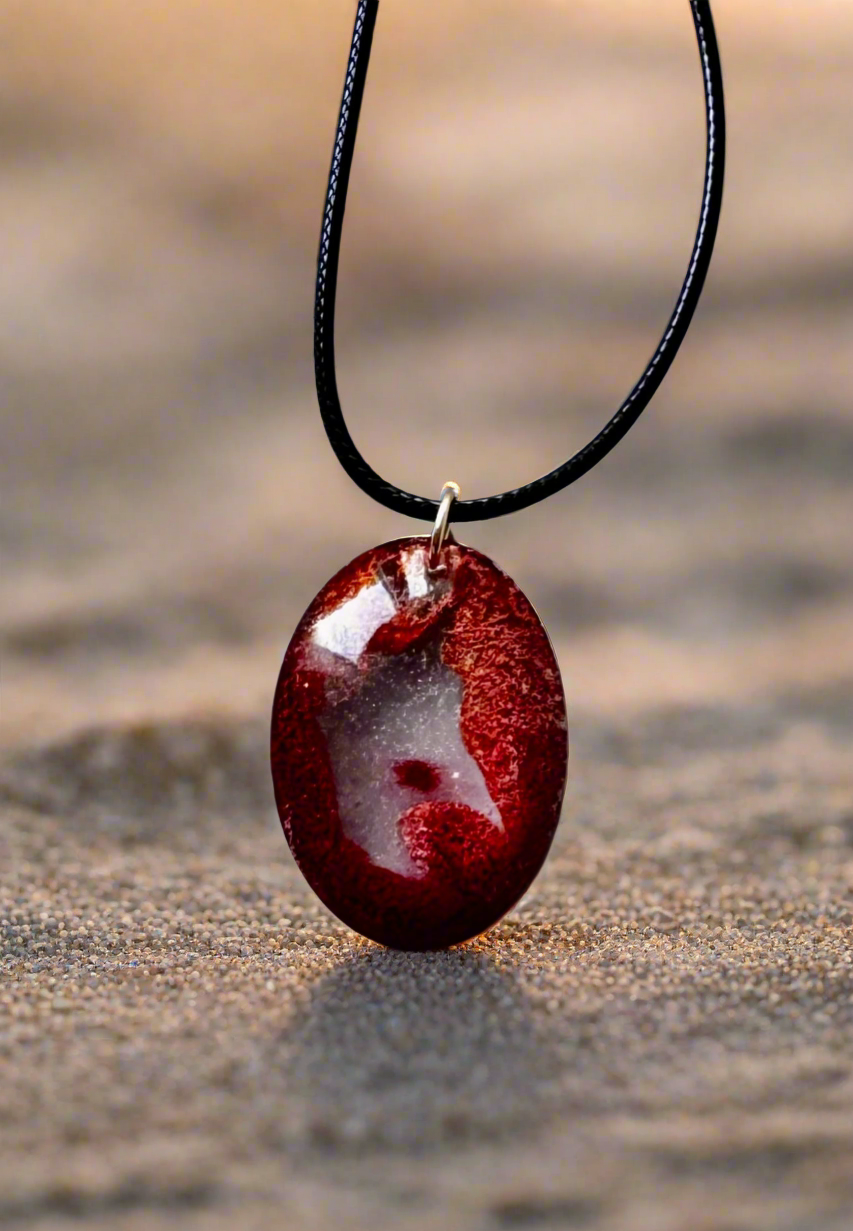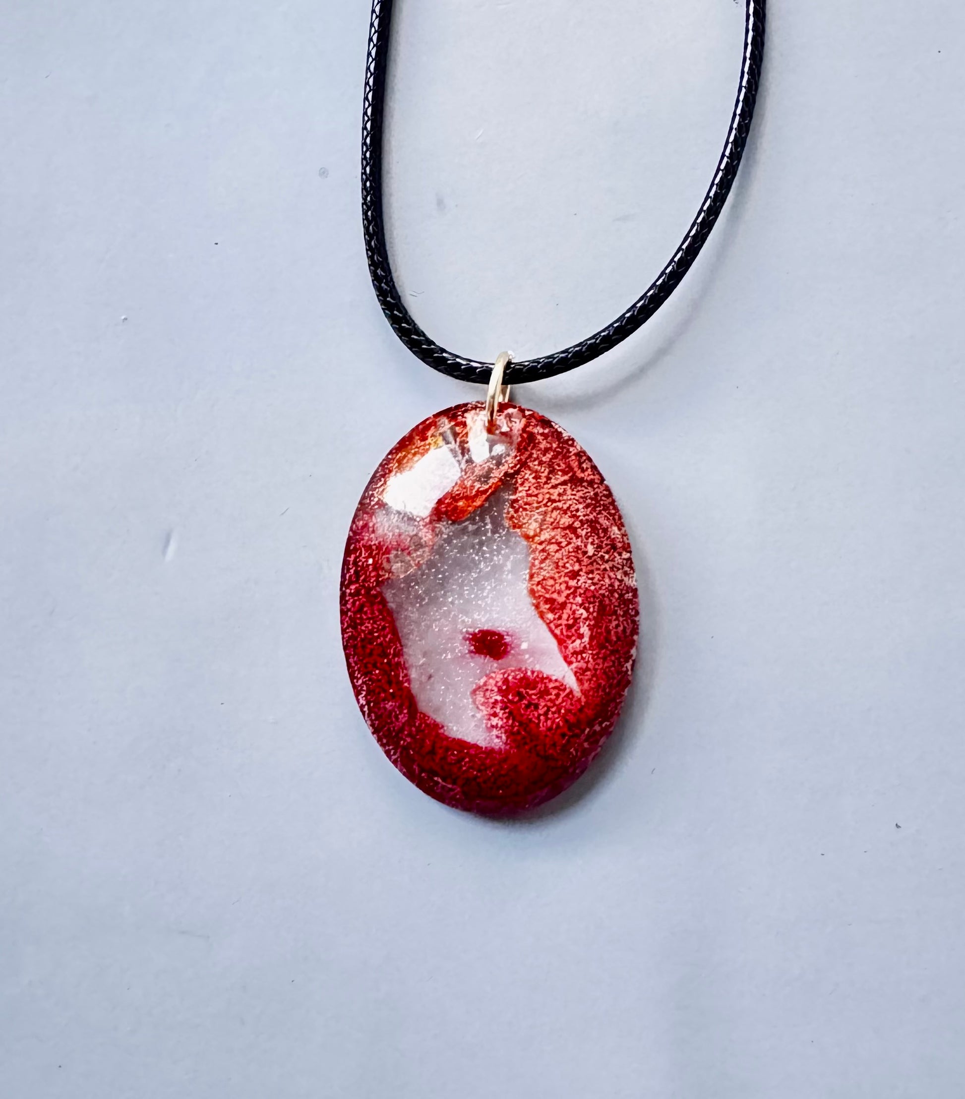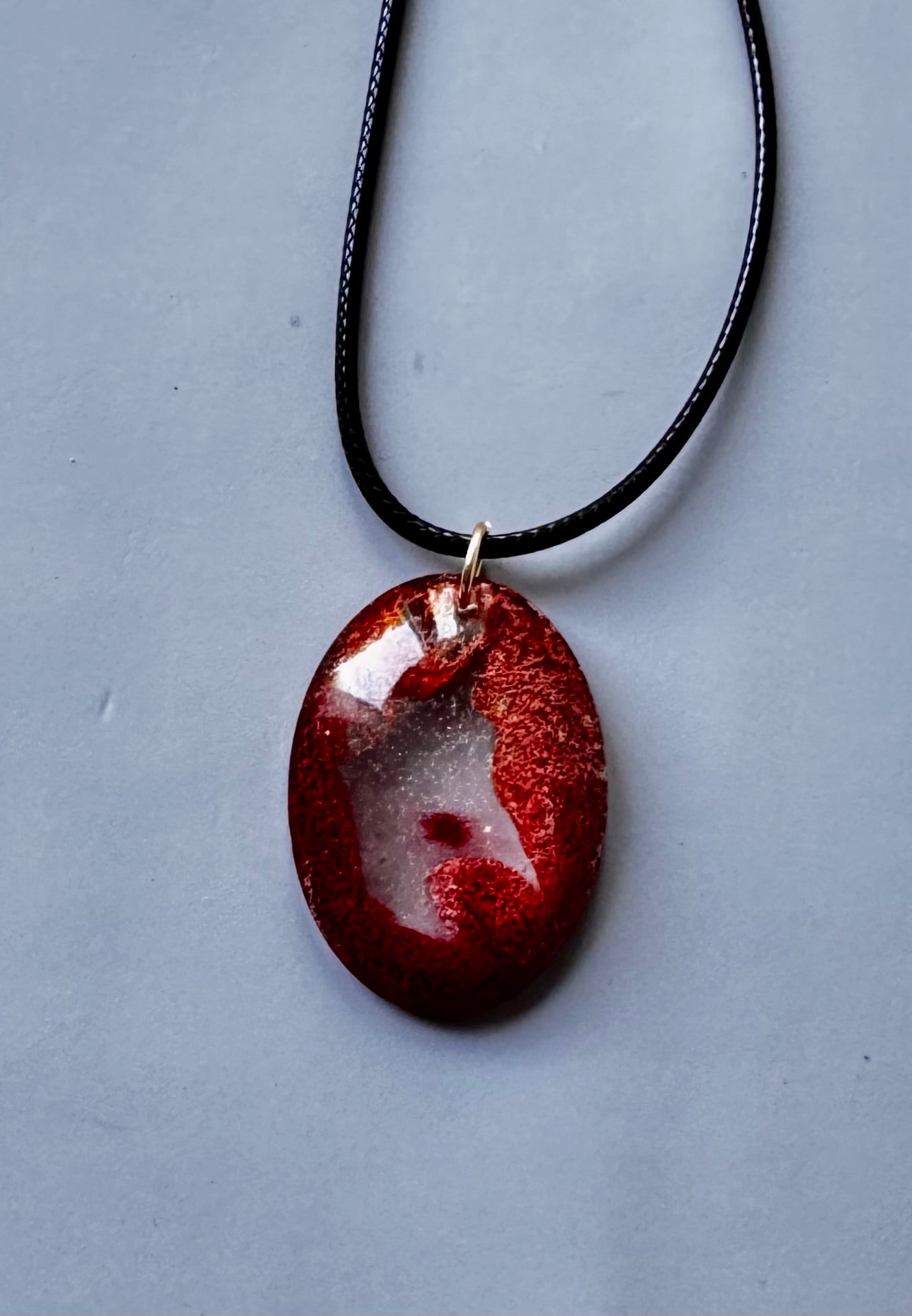 This necklace, Fire and Ice, features a stunning combination of dark amber, red, and yellow hues that create a captivating pendant. The impeccable clarity of the pendant adds to its aesthetic appeal. Elevate any outfit with this exquisite piece.