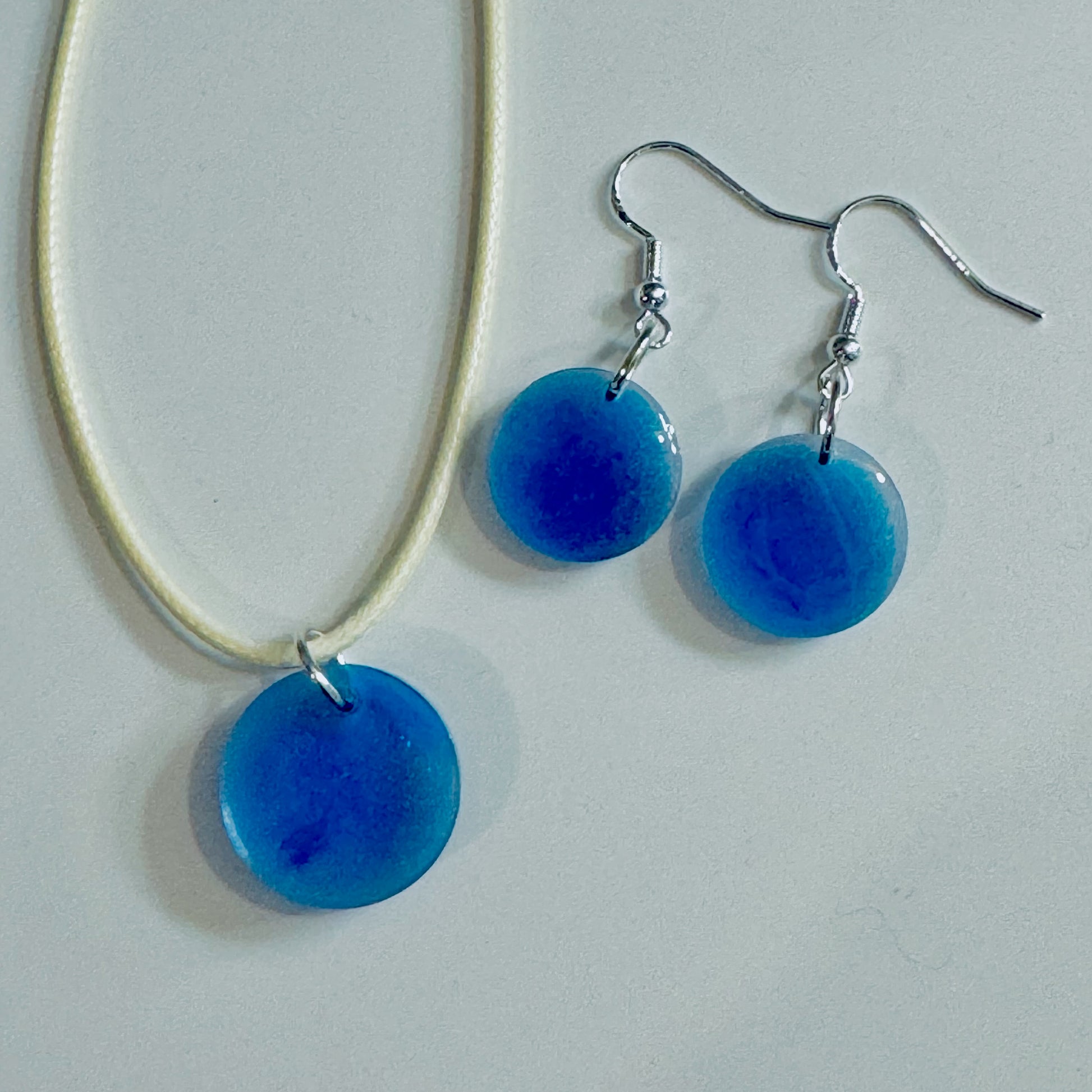 Celebrate your love for the game with the Blue Horizon Set, a timeless necklace and earrings combination that captures the spirit of team pride. Featuring a minimalist round design with a gradient blue center reminiscent of a clear sky meeting the horizon, this set brings calm elegance to your game-day attire. Paired with a soft white cord, this set is perfect for fans who value style, simplicity, and versatility.