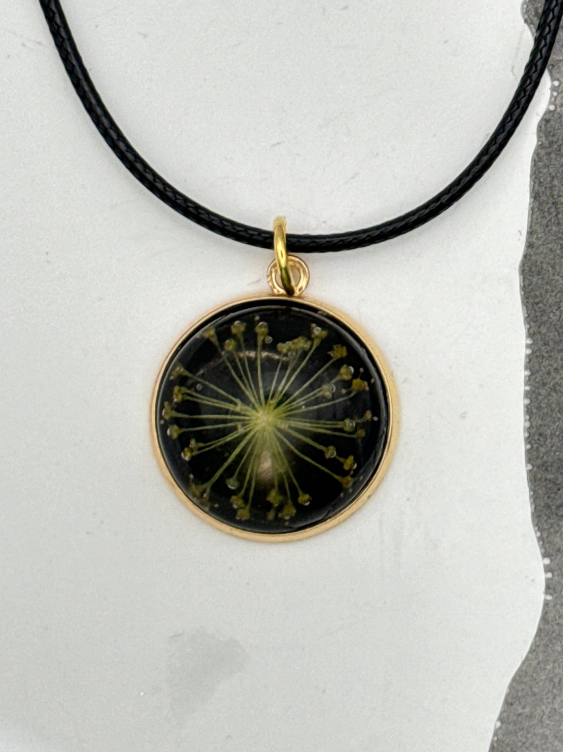 Experience a piece of summer all year round with my I'm a Big Dill Pendant. Handcrafted with real dill blooms from my summer garden, this pendant is a unique and charming addition to any jewelry collection. Show off your love for nature with this one-of-a-kind piece.