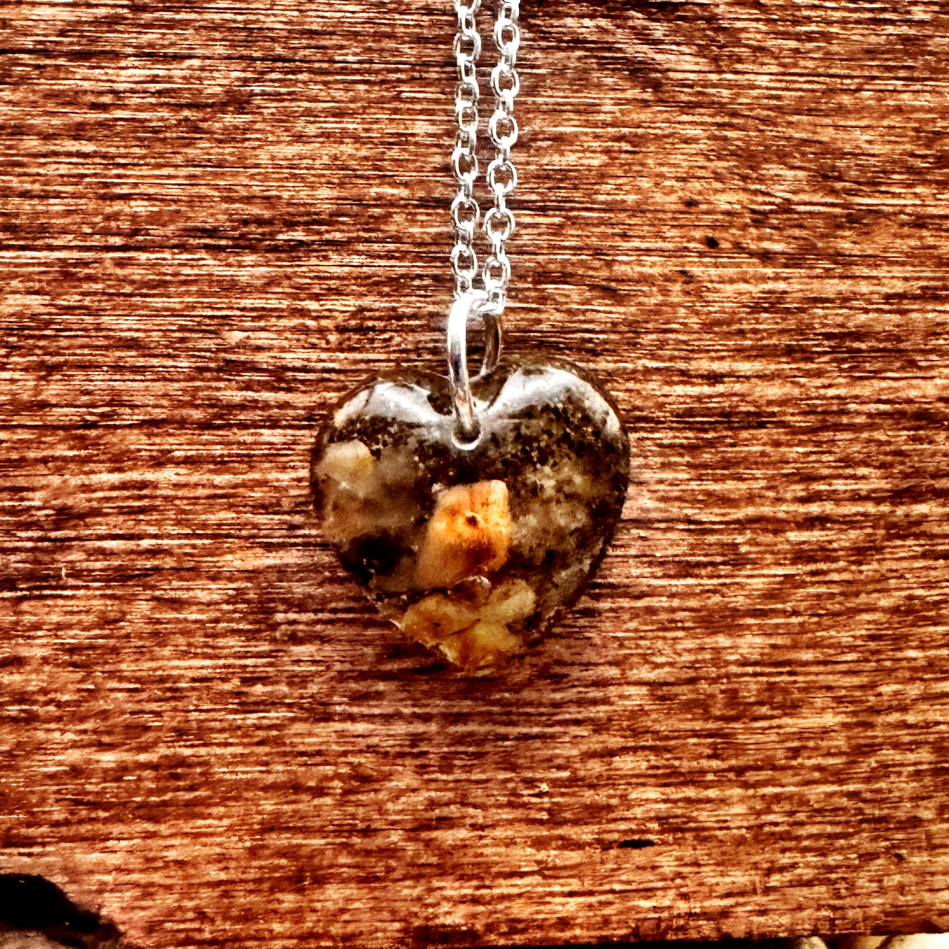 The Missouri River Keepsake Heart Pendant holds a piece of nature’s story within its frame. Made with authentic pebbles and sand gathered from the banks of the Missouri River, this contemporary pendant captures the timeless flow and grounding energy of one of America’s greatest waterways. Each stone and grain is preserved in clear resin, creating a natural mosaic that is both earthy and elegant. A meaningful keepsake for adventurers, nature lovers, or anyone who carries the spirit of the river with them.