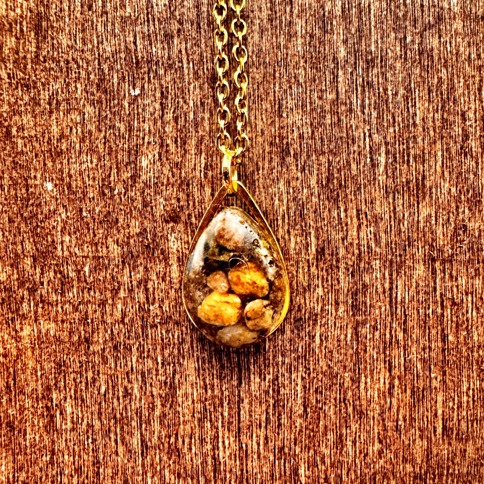 The Missouri River Keepsake Pendant holds a piece of nature’s story within its teardrop frame. Made with authentic pebbles and sand gathered from the banks of the Missouri River, this pendant captures the timeless flow and grounding energy of one of America’s greatest waterways. Each stone and grain is preserved in clear resin, creating a natural mosaic that is both earthy and elegant. A meaningful keepsake for adventurers, nature lovers, or anyone who carries the spirit of the river with them.