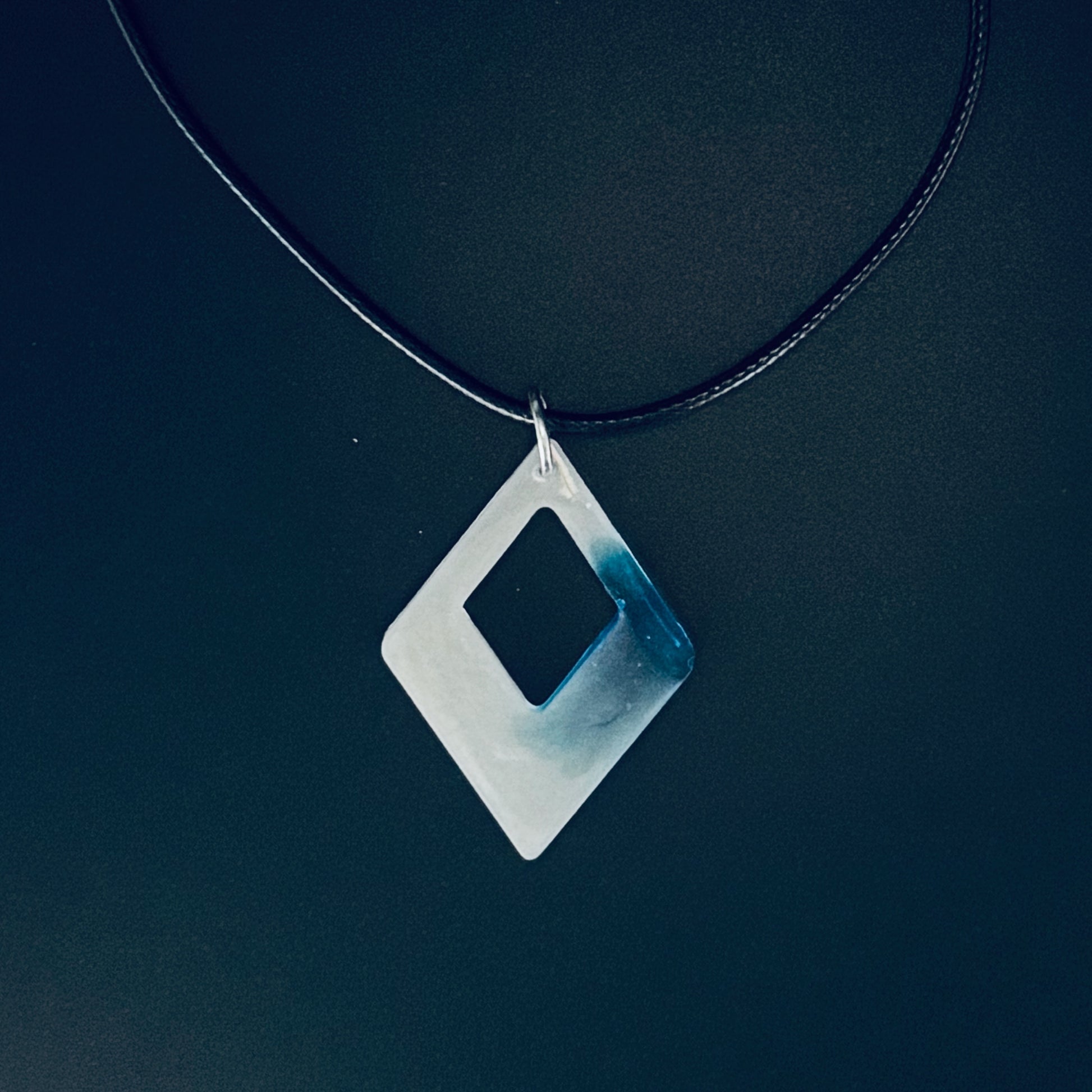 Showcase your team spirit with the Dynamic Diamond! Featuring a sleek diamond shape with a gradient of icy blues fading into soft white, this pendant exudes modern style and versatility. Crafted with a lightweight, polished finish, it hangs gracefully on a durable black cord. Perfect for those who love geometric designs and want to support their team in a bold, contemporary way!