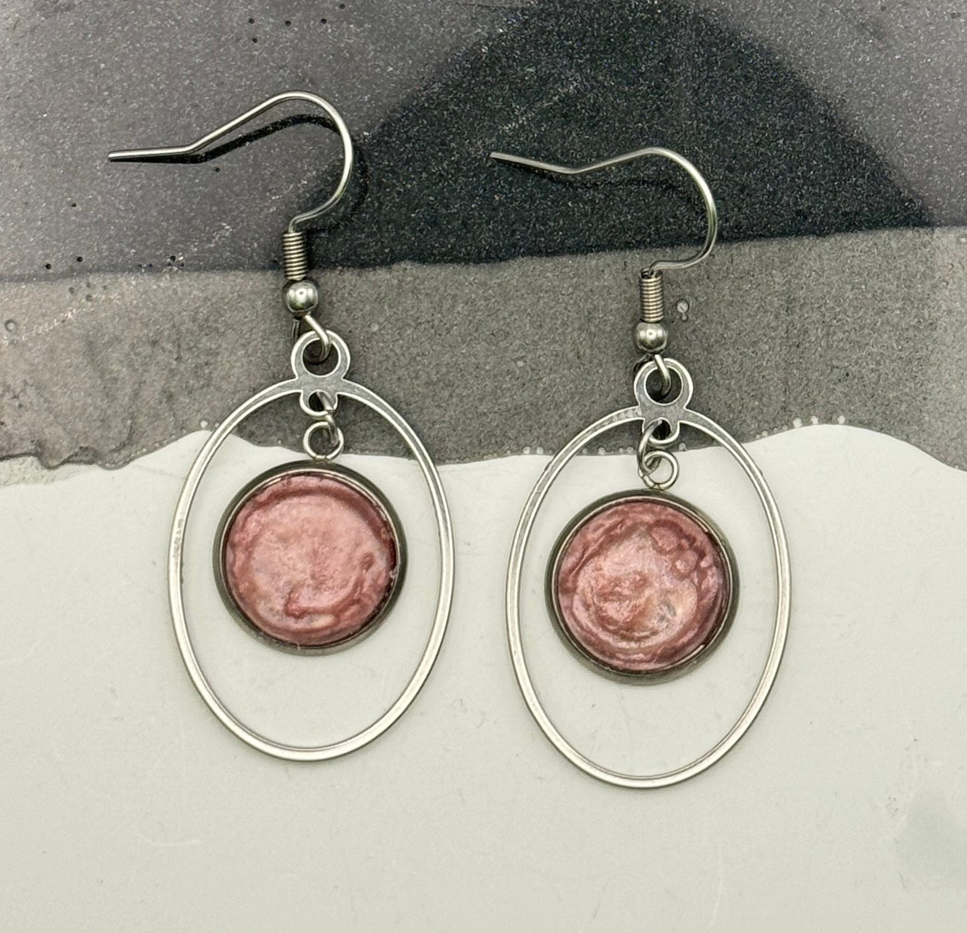 Oval dangle earrings with pink center