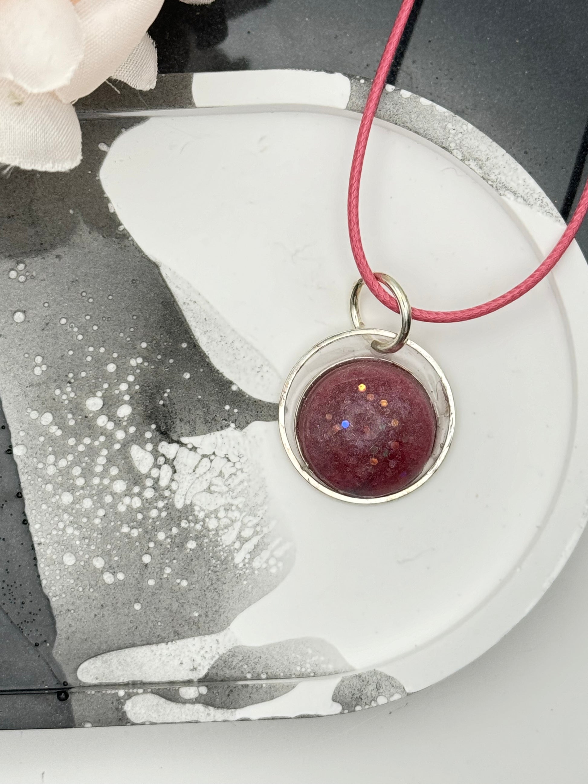 Pink and silver round pendant