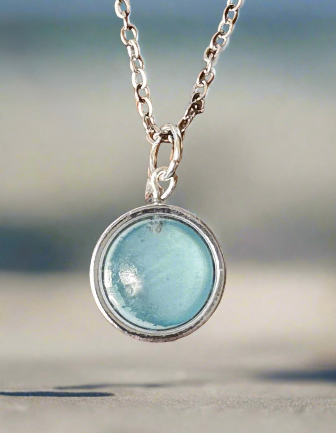 The Solid Blue necklace brings the calming blue of the sky to your style. The piece is framed in silver-tone sphere setting, creating a sleek finish that pairs effortlessly with a casual and delicate look.